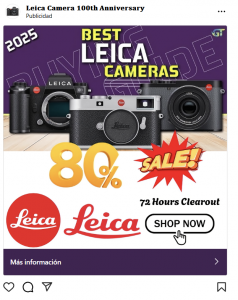 Entras en Instagram, te gusta la fotografía. Y te llega un post con ofertas de cámaras Leica.